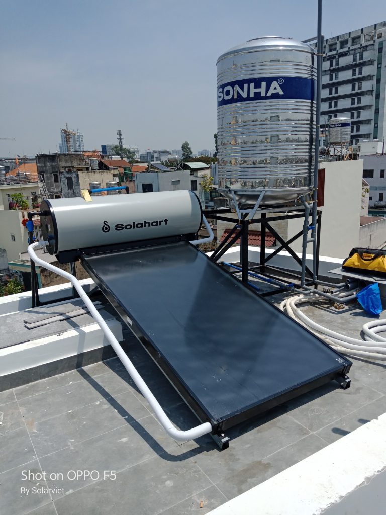 Giàn Máy Nước Nóng Năng Lượng Mặt Trời Solahart Sunheat 150L Cho Hệ Thống Khách Sạn Tại Quận 2, TP.HCM